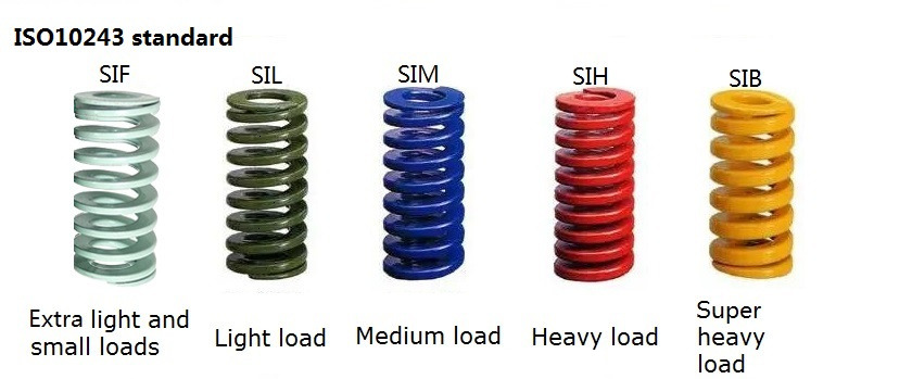 ISO die springs are rectangular wire helical compression springs used in die and mold-making industrial applications.